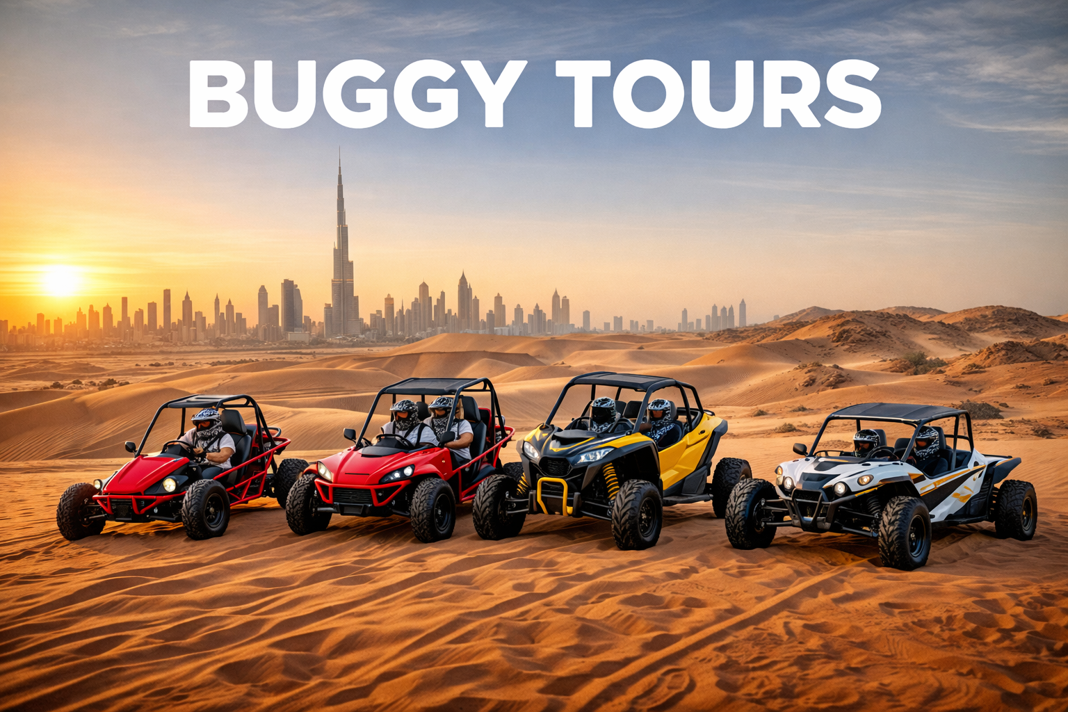 We offer a variety of Safari and Buggy tours, including desert safari with dinner, without dinner, dune bashing adventures, romantic set up in the desert and off-road buggy excursions